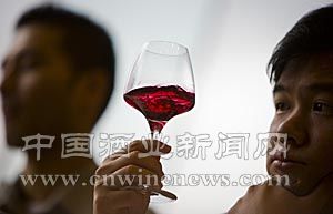 Does it have what it takes? A man examines a glass of wine from Spain during a tasting at Vinexpo Asia-Pacific in Hong Kong on Wednesday.