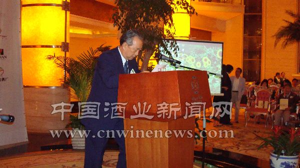 中国酿酒工业协会理事长王延才为拍卖会致词。