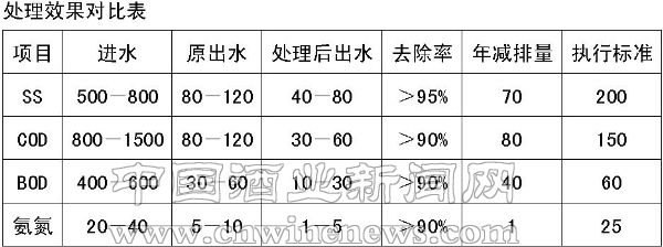 白酒厂污水通过上述节能处理后,可大量减少地下水的开采,提高水资源综合利用率,同时可减少污水排放总量及降低污水排放浓度。主要污染物排放量由180吨/年减少到43吨/年;主要污染物排放浓度由105mg/L减少到60mg/L;年节水量100万吨、节电量98万kwh,减少了污水处理费用,全年可节约成本150万元,产生可观的经济效益,为白酒企业的可持续发展提供了有力的能源保障。