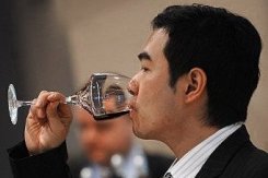 A customer tasting wine at the 2008 Vinexpo in Hong Kong |