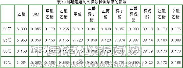 5.2 外界环境温度对外标法检测结果的影响(表10)