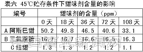3.2 甜味剂稳定性试验结果(表五、表六、图一)