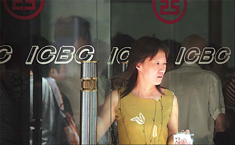 A woman leaves a branch of the Industrial and Commercial Bank of China in Shanghai. China's largest bank has launched the country's first wine trust project, in the hope that alternative investments may prove to be fruitful amid the sluggish global capital market. (Photo: China Daily) |