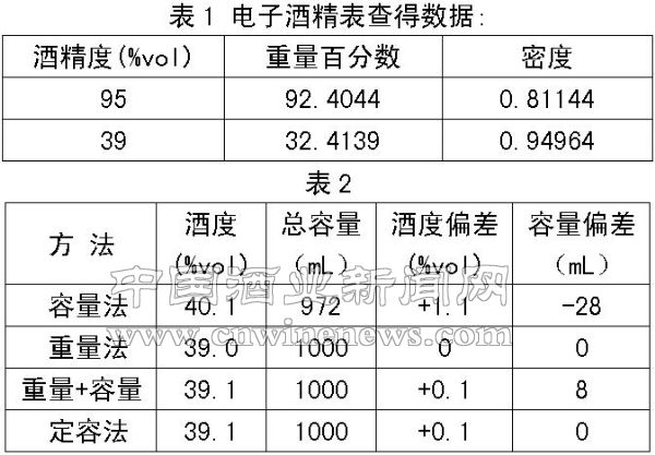 2.4 用定容法计算简单易学,技术难度小,易于掌握,偏差小,酒度、容量完全符合要求,但由于生产过程中酒液表面处于动态,实际生产中刻度线观察较难,操作中稍有不慎,就会出现较大误差。