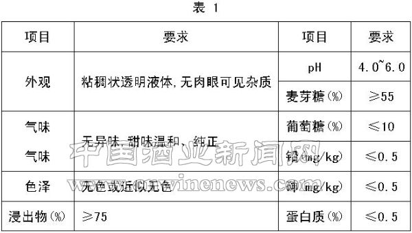 1.1.2 玉米糖浆理化卫生指标(见表1)。