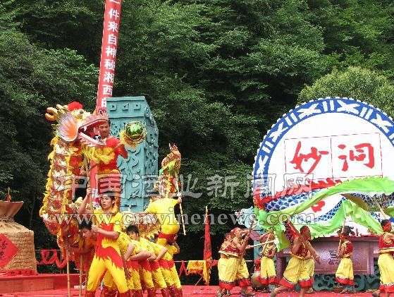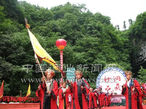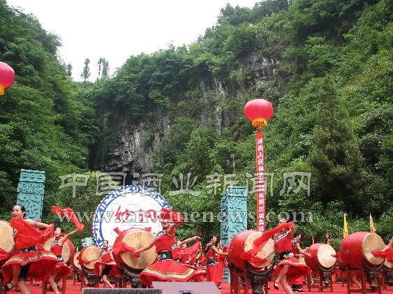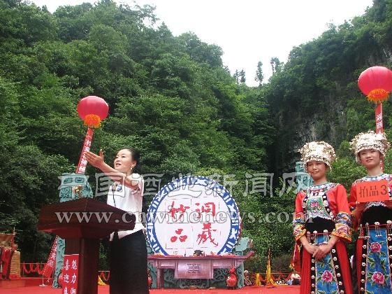 8日上午9时,湖南省政协副主席石玉珍女士宣布“魅力湘西、喜迎奥运、酒鬼洞藏文化酒启封大典”正式开始。1000余名当地民族演员首先进行了极具湘西特色的甲马号、震山炮、憾山鼓表演,紧接着是按照湘西传统民俗举行的祭洞神仪式。