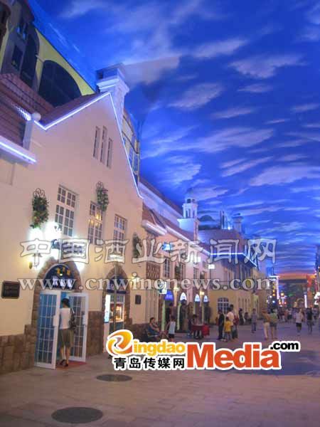 顺着啤酒街一直往西走,就来到青岛新打造的一处集餐饮娱乐为一体的休闲地带——天幕美食城。长约460米的城中街以天幕为顶,在室内空间中营造出“旭日东升”、“正午时光”、“夕阳晚霞”等景观,令人称奇。