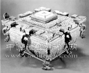 青铜冰鉴缶1977年出土于湖北随县曾侯乙墓中,由铜鉴、铜缶组合而成,缶套置于鉴内。鉴为方体,像一个方口的大盆,腹深,平底,四个兽足,其特点就是器皿中放上冰,中间放食品,也就是最原始的“冰箱”。鉴体铭刻“曾侯乙作持用终”;铜缶亦为方体,小口,斜肩,腹瘦深,平底,圈足,盖内刻铭与鉴铭相同,缶在古代就是一种盛酒的器皿。