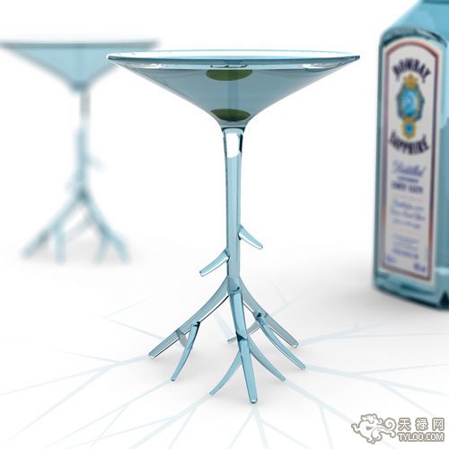 Benjamin Hubert工作室设计的植物根形状的马提尼酒杯在英国举办的Bombay Sapphire Designer Glass比赛中被大加赞赏。设计师的灵感来源于植物有机体的无规则根的形状。