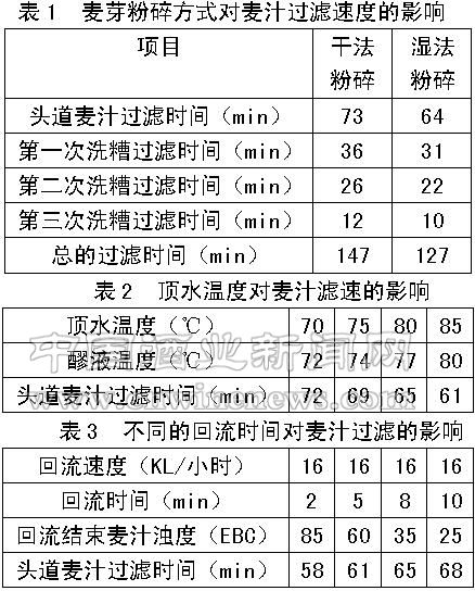 综上所述,影响麦汁过滤效果的因素很多,除了受过滤设备和过滤操作影响外,还受原料配比、麦芽粉碎、糖化工艺等因素的影响。在生产过程中,只要选择合理的操作方法,就一定能够提高过滤效果。