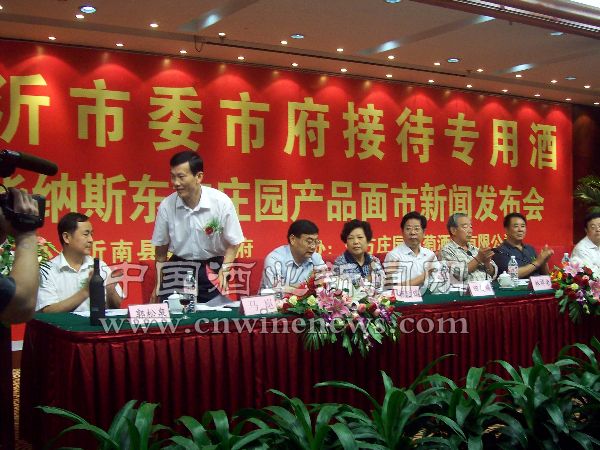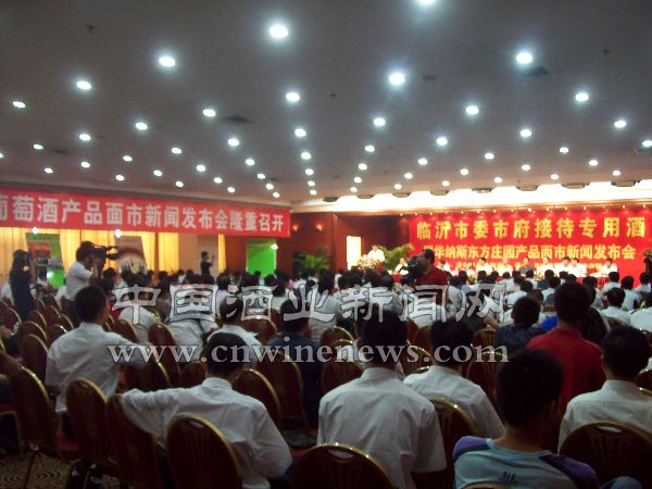 8月28日,华纳斯·东方庄园葡萄酒业有限公司“临沂市委市政府政务接待专用酒暨华纳斯·东方庄园产品面世新闻发布会”在临沂市沂景假日酒店隆重召开。中国葡萄酒专家郭松泉、山东省原副省长、省人大常委会原副主任张瑞凤、华纳斯东方庄园公司董事长、总经理、临沂市六大班子领导、各县市区领导以及经销商、媒体记者等400余人参会。