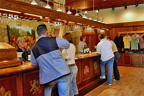 Visitors sample wine in the tasting room at the Chateau Montelena Winery in Calistoga. The winery was established in 1882, but winemaking on the property virtually ceased from Prohibition until 1972, when James Barrett bought the estate. Four years later, Chateau Montelena helped catapult California to the forefront of the wine world at the now-famous Judgment of Paris wine tasting when its 1973 Chardonnay was rated above all others.