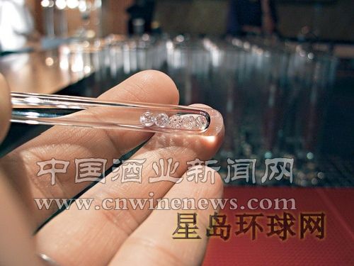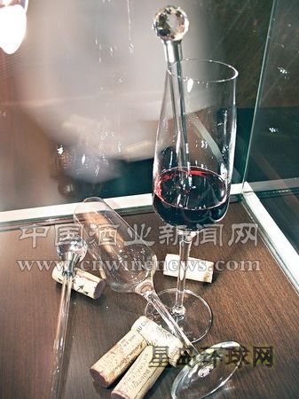 后来又用红酒水晶棒试了两支一新一旧的红酒,结果是水晶棒对老酒的效果较明显。例如用在2005年后出产的新世界红酒,效果则不大;相反,用在已“起渣”的1996年Deschants M.Chapoutier上,效果最好,反映比醒酒器更快。