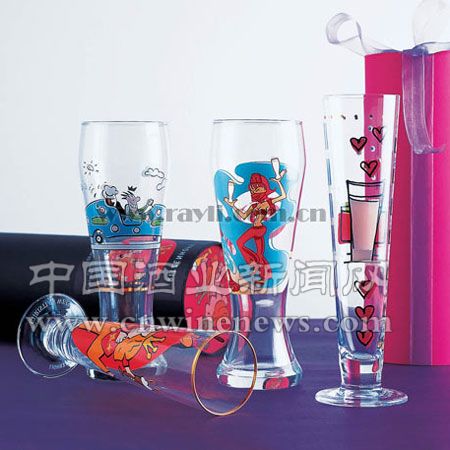 可以配对啤酒对杯上各有一个男或女的卡通图案,里面倒入泡沫纷扬的啤酒,会让餐桌上的气氛变得更加轻松。