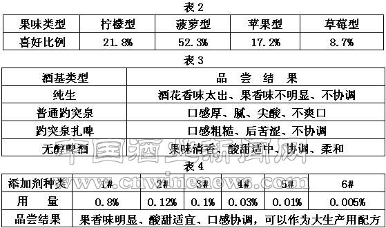 据品尝结果,经研究决定,选择无醇发酵液作为果味啤酒的酒基。