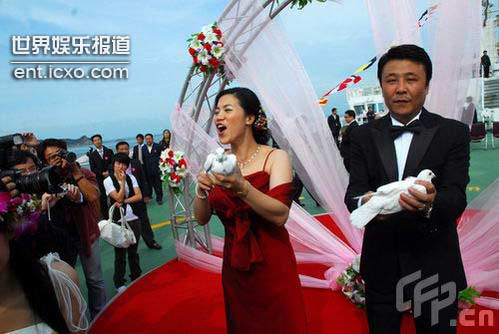 王楠婚礼现场 放白鸽喝交杯酒