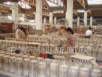多年来,江西萍乡市兄弟瓷业有限公司以专业生产陶瓷酒瓶而闻名于业内外。在生产过程中,该公司严格按照ISO9001国际质量标准,生产的陶瓷酒瓶通过江西省工业陶瓷质量监督检查,铅、镉溶出量、吸水率、渗漏3个指标均优于国家标准,赢得了国内众多酒厂的信赖。图为车间内繁忙的生产景象。