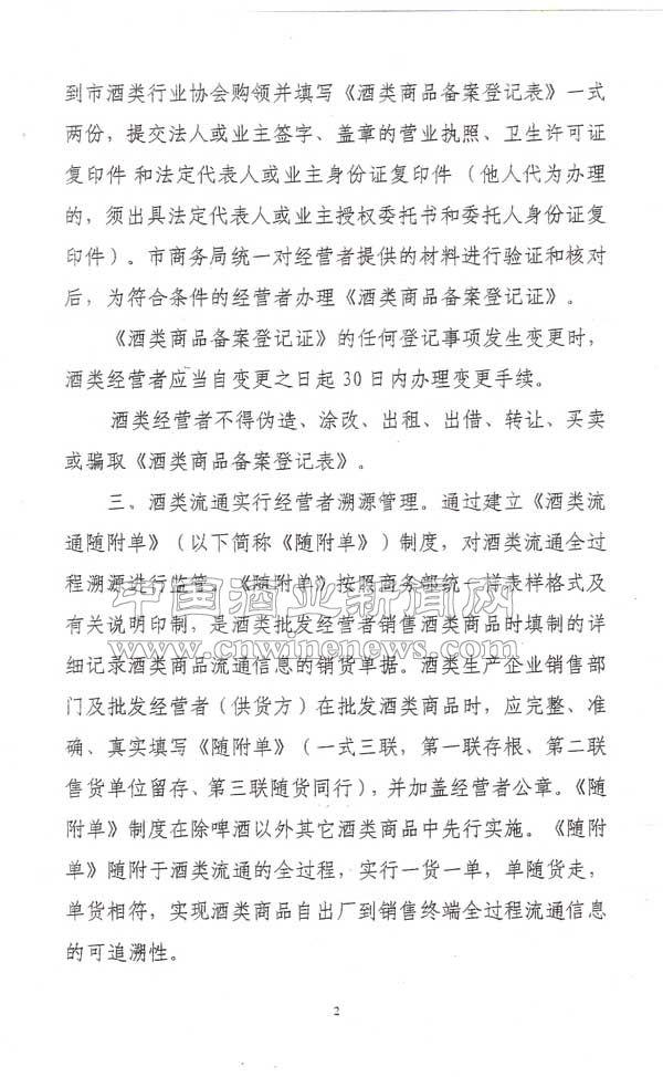 关于加强酒类流通管理实行备案登记和随附单制度的通知