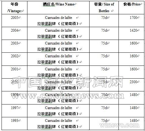 拉菲堡(Château Lafite-Rothschild)2008年8月价格行情