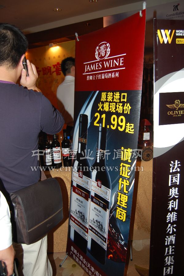 糖酒会期间,国际酒商团吸引了大批经销商的注意。记者注意到,提高产品竞争力,进口酒商也开始利用价格进行竞争:詹姆士酒业(天津)有限公司分别打出了21.99元、25.99元的价格以吸引经销商。
