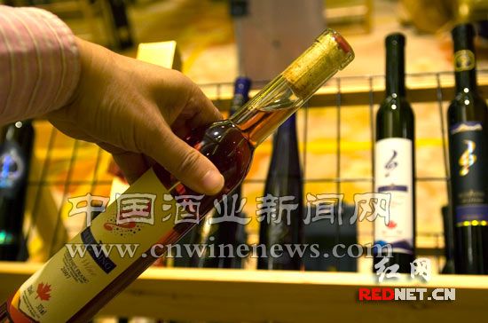 (冰葡萄酿造的加拿大顶级冰酒现身长沙糖酒会。)