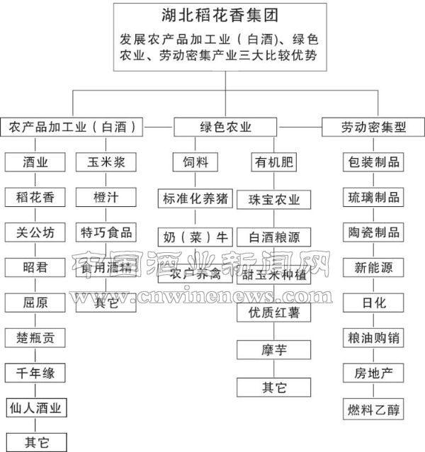 总体上,稻花香产业体系的构成可用一句话来概括,就是:资源节约型、环境友好型一体配套发展。具体说,则是以农产品加工业(白酒)为龙头,集绿色种植、食品饮料、包装制品、金塑制品、玻璃制品、陶瓷制品、有机饲料、标准化养殖、生物化工、洗涤产业、房地产开发等为一体配套发展的多产业复合型结构。(见附表A-1)
