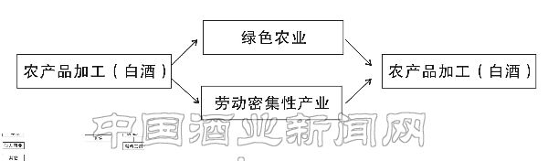 而这之中,农产品加工业(白酒)作为龙头产业,是整个农业产业结构调整的发动机和加速器,始终居于首要和主导地位。我们之于农业循环经济的全部实践都是从这里发生和发展的(见附图A—2 稻花香农业循环经济三大比较优势产业相互关系)