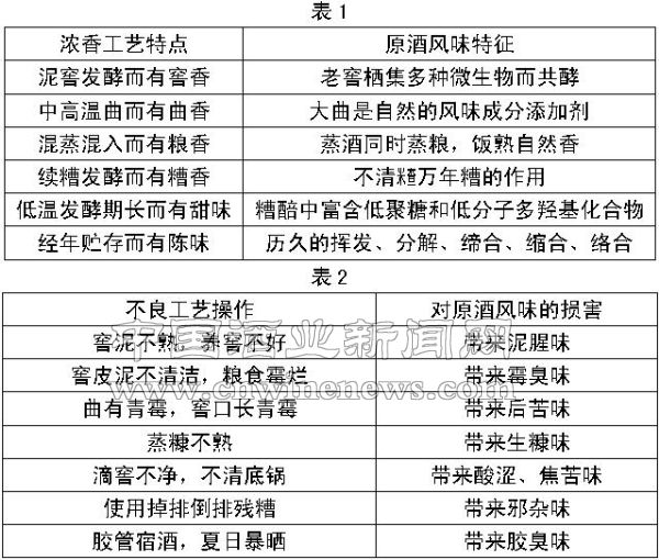 十一、浓香工艺特点带来的原酒风味特征(表1)