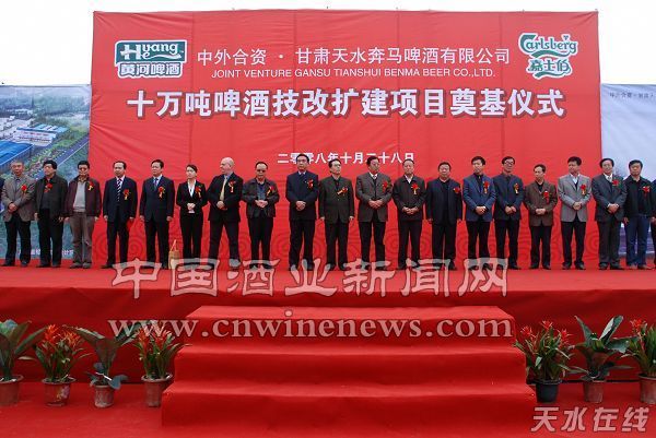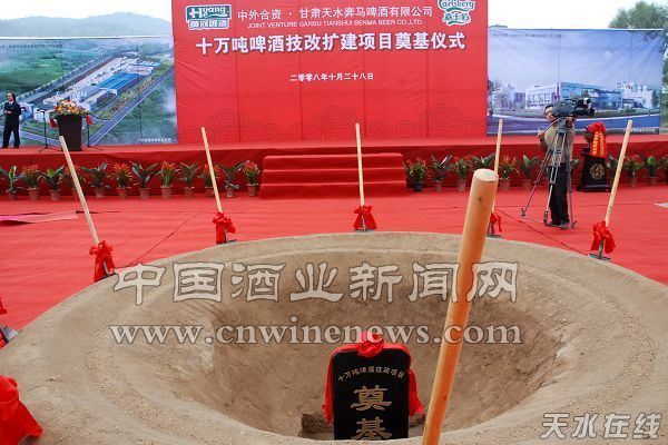 10月28日上午,天水奔马啤酒有限责任公司院内,彩旗飘飘、喜气洋洋,在一阵阵欢快的礼炮声中,天水奔马啤酒有限公司10万吨啤酒生产线的奠基开工仪式隆重举行。