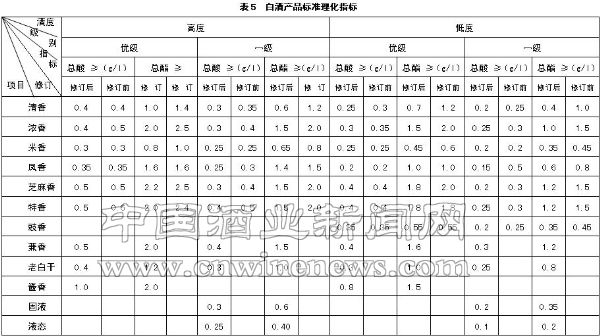 二、白酒产品标准现状(表5)