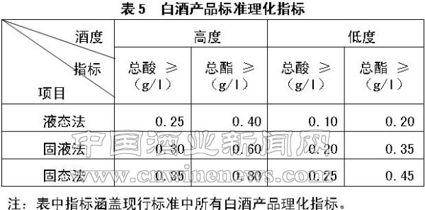 笔者认为,白酒产品标准理化指标留下(或新制定)三个标准即可,即:液态法、固液法、固态法(名称可商定),理化指标见表6。