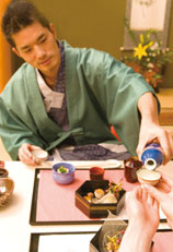 清酒可以热饮,也适合凉饮。日本的冬天,日本人将清酒烫热到45度左右,用小瓷瓶装着,一边喝一边漫谈,酒味又不易发散。夏季里,许多年轻人喜欢喝冷酒,有专门的冷酒具,玻璃制,中间有凹进去的洞,放入冰块,酒进去不会掺水,又能保持低温。清酒比较讲究在正规礼仪宴会上喝。男士举起酒杯,一口一口接着喝下去,而女士则是用右手托着酒杯,左手垫在酒杯下一小口一小口慢慢品尝。日本清酒除了在居酒屋和宴会上喝以外,再就是在庆功的大会上作为喜庆礼品来为大家助兴。这时,用的酒是大樽装,大家围成一团,同时举起木制榔头向樽口砸去,喜庆而热闹。(李 花)