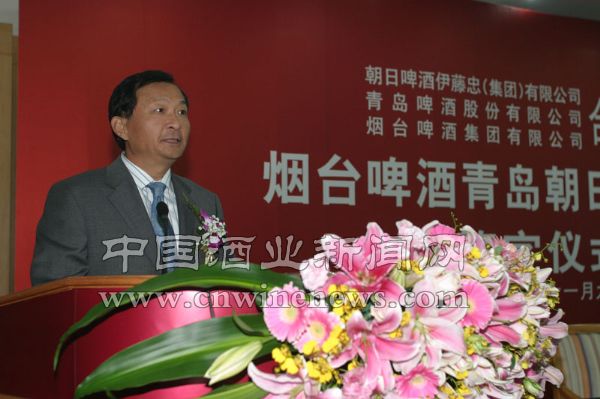 已经取得了发展壮大的烟台啤酒今天又通过与青岛啤酒的合作,更加扩大开拓了今后的发展道路和发展方向,我非常高兴地期待着今后的越来越快的发展。