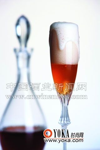 做法:将香槟杯浸上Angostura Bitters酒,在香槟杯边上蘸上砂糖,往杯中倒入伏特加,最后加入凯歌香槟即可。