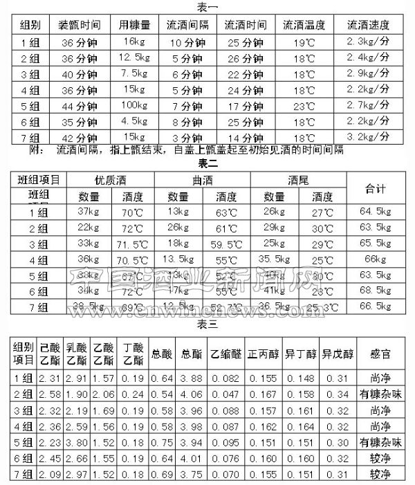 2.1 由7个班组在同一车间、同一甑上进行现场操作(表一)