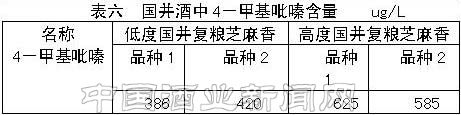 4.3 国井复粮芝麻香酒微量成分众多,我们只是对其中的一部分成分进行了分析,随着检测技术的不断提高,还有待进一步深入研究。