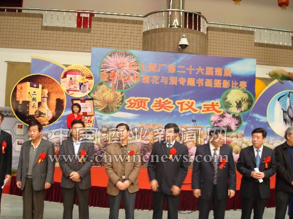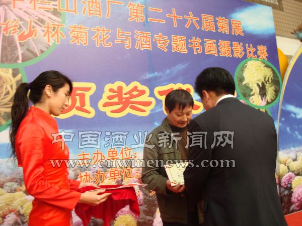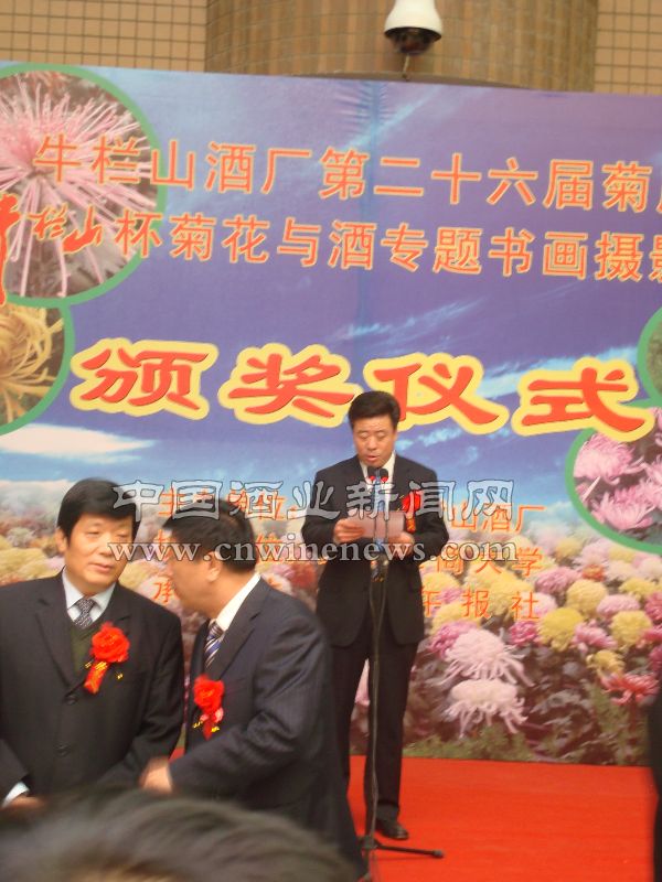 2008年11月6日,牛栏山酒厂第二十六届菊花展暨“牛栏山杯”菊花与酒专题书画摄影大赛颁奖仪式在厂内职工之家开幕。此次专题书画摄影大赛共收到参赛作品300余幅,经过权威专家评选,入围作品150幅,其中,除书法作品特等奖空缺外,绘画、摄影作品均评选出特等奖1名,一等奖2名,二等奖3名,三等奖4名(书法作品三等奖5名)。中国书协副秘书长、书法家、本次大赛评委张虎,北京书协名誉副主席、书法家、本次大赛评委张有清,北京书协住会副主席、书法家、本次大赛评委田伯平,北京美协住会副主席、画家、本次大赛评委贺成才,北京美协秘书长、画家、本次大赛评委张亮京,中国摄影家协会,大众摄影杂志社等相关领导专家参与了本届“牛栏山杯”菊花与酒专题书画摄影大赛活动。“‘牛栏山杯’菊花与酒专题书画摄影比赛”的获奖作品将在菊花展展区内悬挂展出,通过书画、摄影的艺术形式,将菊与酒特有的美感和魅力定格于牛栏山,让牛栏山的美酒伴着悠悠菊香,为前来牛栏山酒厂做客的宾朋好友们带来吉祥如意的美好祝福!