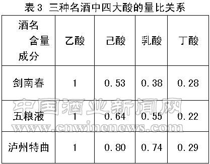 二、浓香型国家名酒中骨架成分的量比关系(表2、表3)