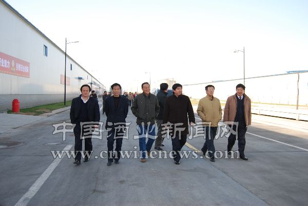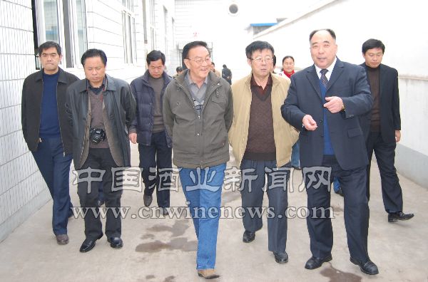 企业代表们在扳倒井股份有限公司董事长赵纪文(右三)的带领下参观扳倒井。