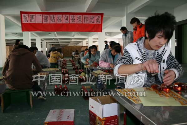 贴标一般都认为是女孩子干的活,但《华夏酒报》特约记者近日在浙江会稽山绍兴酒公司看到的情景却颠倒了传统的思维。在会稽山瓶酒二部组织的贴标包装比赛中,一位“帅哥”非常利索地进行贴标操作。