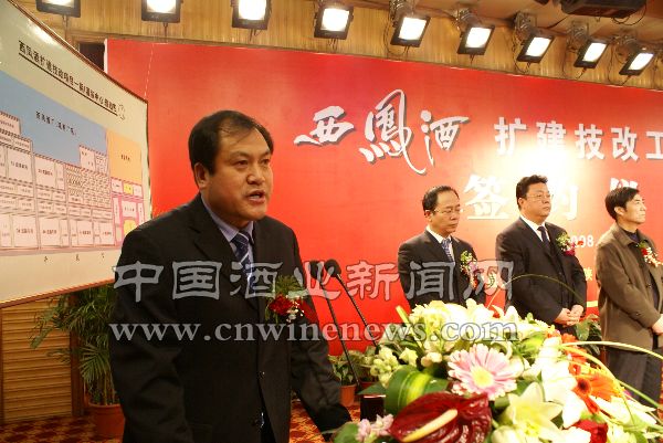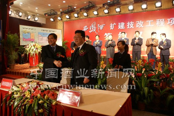12月2日,陕西凤翔县人民政府和陕西西凤酒集团股份有限公司在宝鸡万利大酒店举行西凤酒扩建技改工程项目签约仪式,这标志着西凤酒扩建技改工程项目开始正式实施,“建设西凤酒城、打造百亿企业”迈出了实质性步伐。