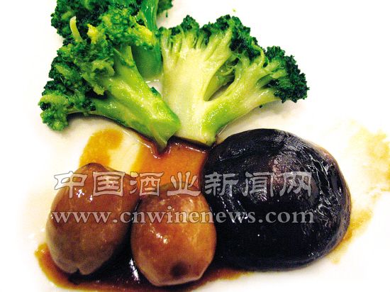口感点评:鲍汁扒三宝蔬里的鲍汁甜中带咸,三宝则为草菇、香菇、西兰花,与酒的细腻和谐真是“怎一个爽字了得”。