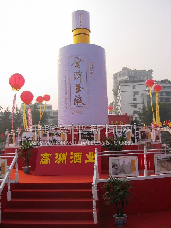 《华夏酒报》记者在展会的酒类区域看到,五粮液、高州酒业、叙府酒业、红楼梦酒业等宜宾市的主要酒类企业都精心布置了自己的展区,将自己的酒种展示给参观者。参观者在参观这琳琅满目的酒种的同时还可以免费品尝这些美酒。设立在地标广场圆形喷泉处的高州酒业的展位成为一个亮点,一瓶高约11米金潭玉液酒的防酒瓶立于中间,其下采用天坛造型,将金潭玉液系列酒以及一幅幅记录企业发展历程、展示企业风采风貌的80幅画卷围绕其周,吸引了大批的参观者驻足。