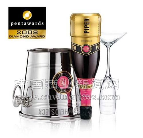 Pentawards 2008 钻石奖的获奖作品,PIPER HEIDSIECK Rosé Sauvage,香槟酒瓶的设计,特点就是“倒转”,连他们的网站也是倒转的,设计来自Viktor & Rolf 和 BETC Design。