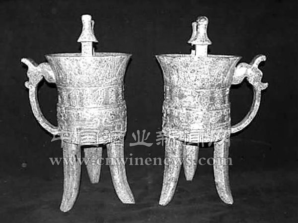 在中国古代的酒文化中,盛酒的用具在商周时期的青铜器中是较为多见的,其中爵杯、觥杯以及斝杯基本属于饮酒用具一类,而卣、尊、卮是主要用来盛酒的,只有斝同时具备了温酒和饮酒的作用。《礼记·礼器》中说“宗庙之祭,尊着举觯,卑着举角”,说明使用酒器是有等级之分的。《考工记·梓人》引《韩诗》云:“一升曰爵,二升曰觚,三升曰觯,四升曰角,五升曰散。”依此说,角与爵之容量为四与一之比。角的造型与无柱的爵很像,只是流与尾同为尖状。自宋以来,定爵形器无流而具两翼若尾者为角。