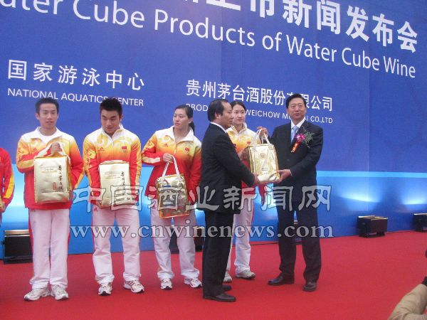 12月18日, “水立方特许产品上市新闻发布会”在北京国家游泳中心水立方举行,本次活动由贵州茅台酒股份有限公司和国家游泳中心联合举办,水立方酒的上市标志着茅台集团对后奥运营销的信心。