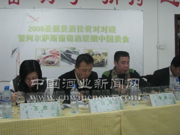 12月23日,“200 8 圣诞美酒佳肴对对碰暨阿尔萨斯葡萄酒联姻中国美食”活动在北京屈浩烹饪服务学校举办。国内的5位烹饪大师配合来自法国阿尔萨斯地区的白葡萄酒,现场为来宾制作了地方特色鲜明的佳肴,美食美酒的搭配赢得了评委和来宾的好评。