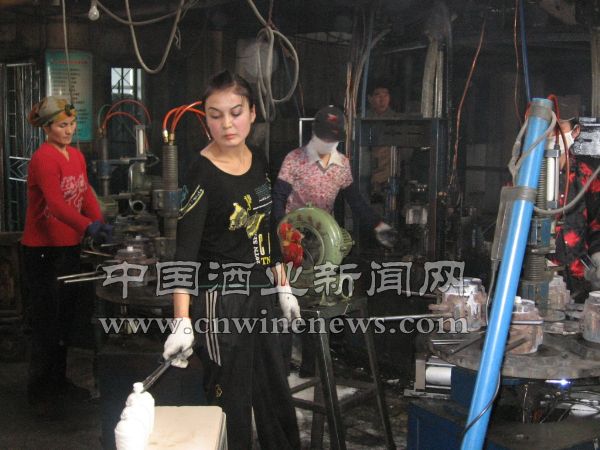 新疆伊力特玻璃制品有限公司面对原材料涨价、员工技能不成熟等困难,因势利导,顺势而为,实施加强员工培训、节能降耗、生产高附加值产品等多项举措,提前62天完成公司下达的生产1700万只乳白玻璃瓶的任务。图为员工正在紧张忙碌地生产乳白玻璃瓶。