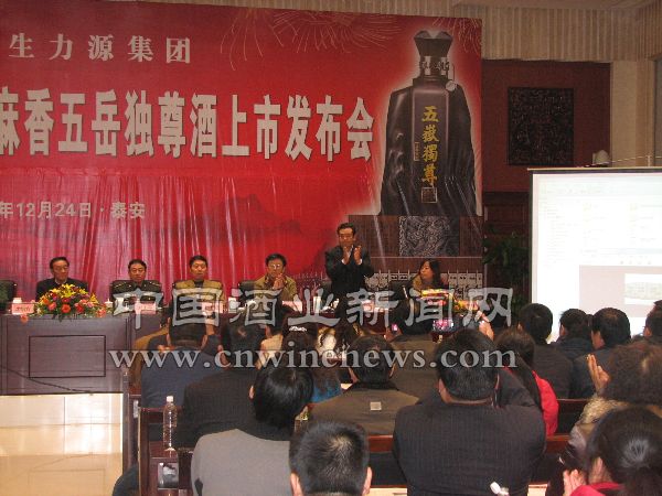 12月24日,山东泰山生力源集团2009年营销年会暨芝麻香五岳独尊酒上市发布会在泰山脚下举行,著名白酒专家沈怡方、山东省白酒专家组组长黄业立、山东糖酒副食品商业协会常务副会长兼秘书长薛剑锐以及泰安市人大、政府、政协、军分区的有关领导到会祝贺,来自全国的“泰山”经销商400余人参加了本次年会。