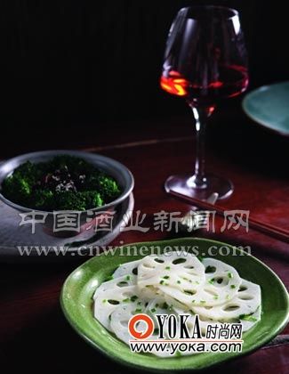 开胃前菜:葱香藕片、翡翠秘制鸡片配吉佳乐世家达维法定产区桃红葡萄酒